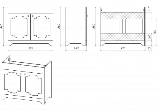 - тумба под раковину Элис 100, арт. Л-Эли01100-013Пр: распашная дверца - 2 шт.