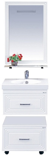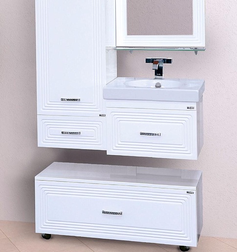 - тумба под раковину: выдвижной ящик, хромированные ручки инкрустированные кристаллами, крепления