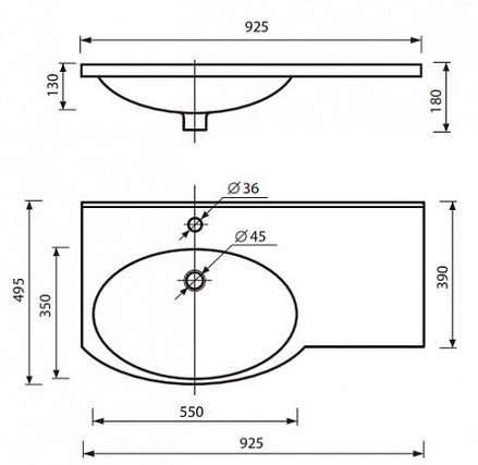 - раковина Флори - 90 L (левая) D М, фаянс, цвет белый