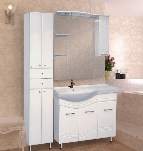 - тумба под раковину Misty Флори 90: ручка - 3 шт., распашная дверца - 3 шт., корзина для белья