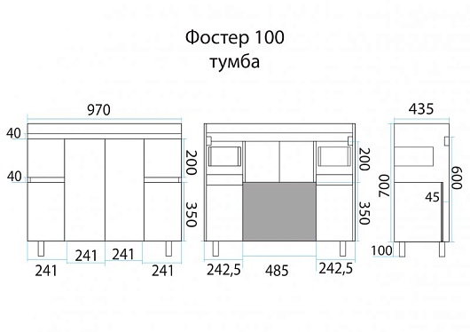 Тумба с раковиной «Фостер 100» с 2 ящиками, арт. Э-Фос01100-01Н2Я
