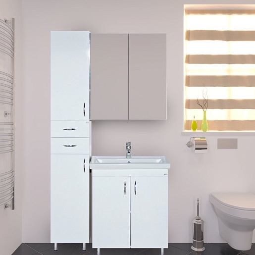 - тумба под раковину: 2 распашные дверцы, 2 металлические ручки, вкладные полки, крепления и опорные ножки.