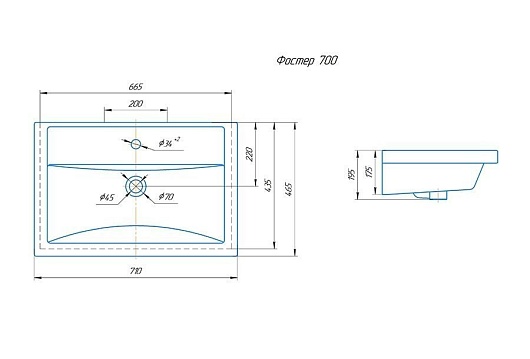Тумба с раковиной «Фостер 70» с 2 ящиками, арт. Э-Фос01070-01П2Я