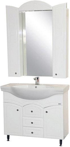 - тумба под раковину: 2 распашных дверцы, 3 выдвижных ящика, 5 металлических ручек с кристаллами, комплект опорных ножек и крепления