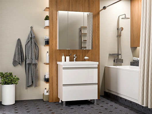Тумба с раковиной Misty Ингрид 75 белая - арт. П-Инг-01075-012Я / 4627173210317.