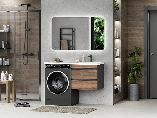 Misty Тумба с раковиной Коломбо 120 R подвесная под стиральную машину дуб галифакс/антрацит