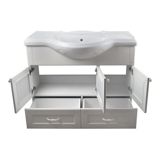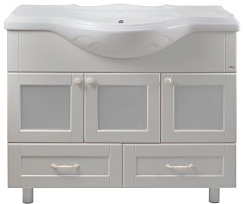 Тумба напольная Латте 105, три распашных фасада, ящики, фурнитура-бежевая.