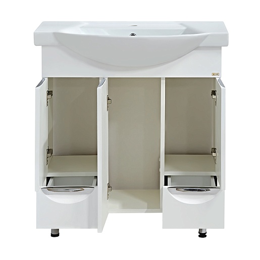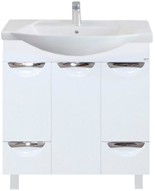 - тумба под раковину: 3 распашные дверцы, 2 выдвижных ящика, 5 врезных металлические ручки, крепления и опорные ножки
