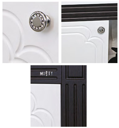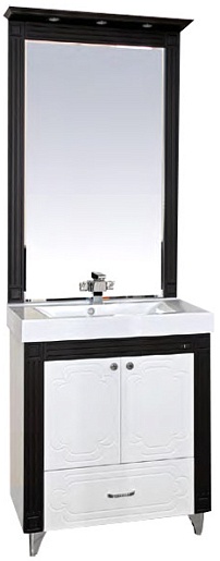 - тумба под раковину: 2 распашных дверцы, 1 выдвижной ящик, 3 металлических ручки с кристаллами, комплект опорных ножек и крепления