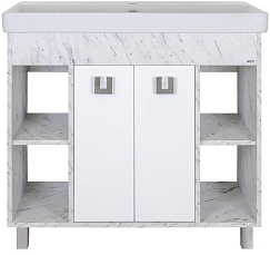 Тумба напольная Мия 90, два распашных фасада, открытые полки, фурнитура-хром.