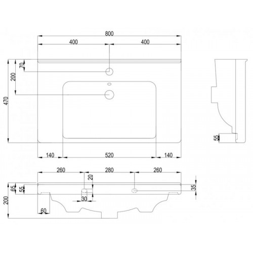 - раковина Дрея Гармония 80, фаянс, цвет белый