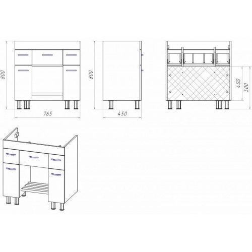 - тумба под раковину Пион 80: ручка - 5 шт., распашная дверца - 2 шт., ящики - 3 шт.