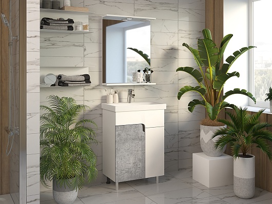 Тумба под раковину Примула 60 бетон/белая