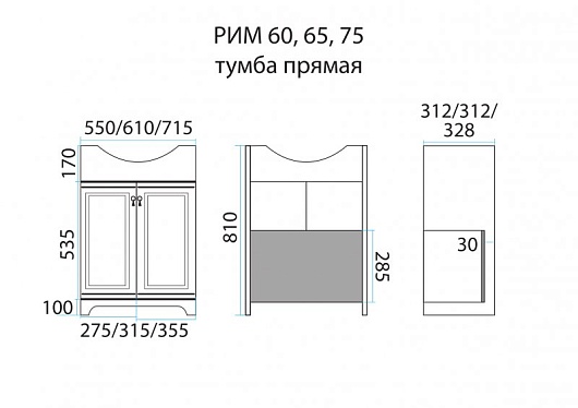 - Рим 60 тумба напольная, два распашных фасада, доводчики, фурнитура-бронза.