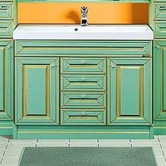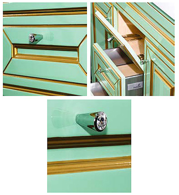 - тумба под раковину: 2 распашные дверцы, 3 выдвижных ящика, хромированные ручки с кристаллом.