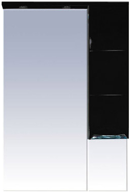 Комплектация: зеркальное полотно, козырек со встроенной подсветкой, распашной шкаф с вкладными полками.