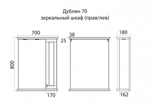 Зеркало для ванной Дублин 70 R, арт. П-Дбл03070-8025П