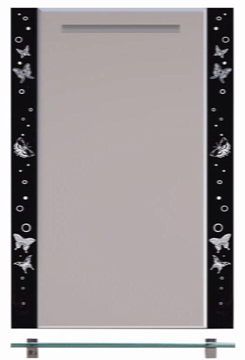 Комплектация: зеркало с подсветкой и стеклянной полкой, система антизапотевания.