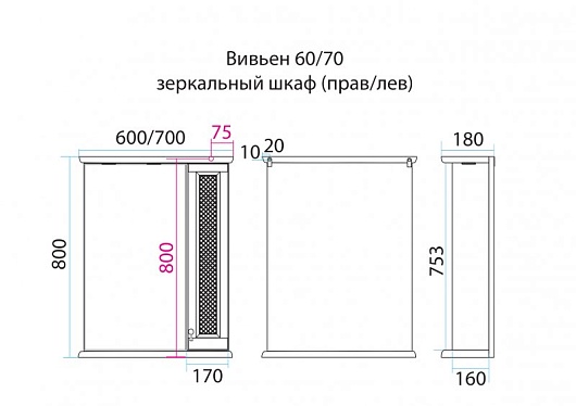 Зеркало для ванной Вивьен 60 R, арт. П-Ввн03060-1015П