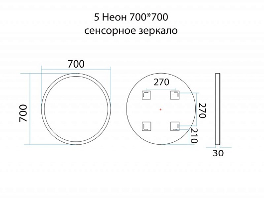 Misty Зеркало Неон 5 LED 70x70 сенсор на зеркале