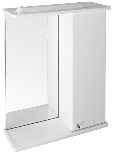 Комплектация: влагостойкое зеркальное полотно, шкафчик, полочки, подсветка.