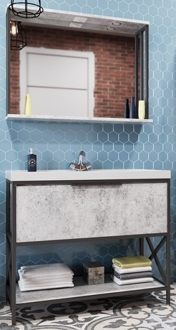 - Зеркало Бруклин 100 арт. 543938: влагостойкое полотно, полочка, розетка, светильники.