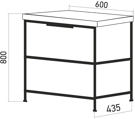 - 1 выдвижной ящик, 1 открытая полка.