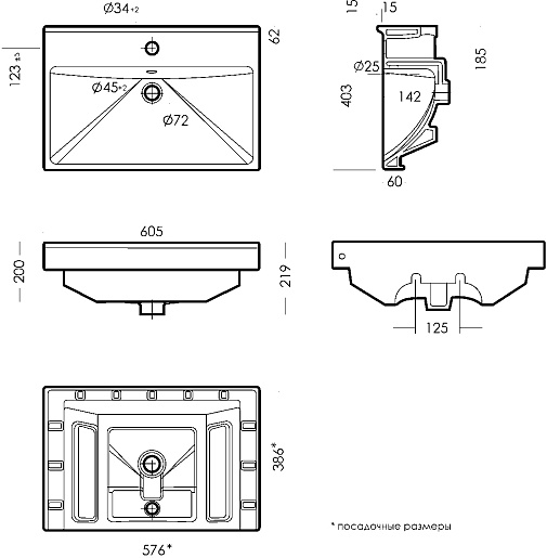 - Раковина со слив-переливом.