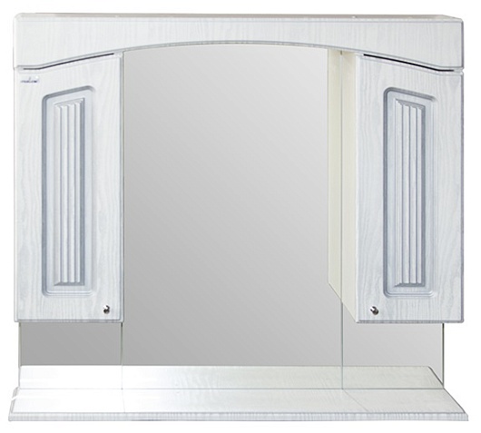 Комплектация: влагостойкое зеркальное полотно, шкафчик, полочки.