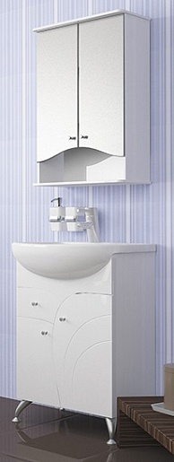 Комплектация: влагостойкое зеркальное полотно, шкафчик, полочки.