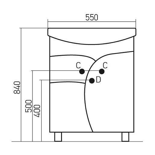 - Тумба Мадлен 55 арт. 523164: распашной фасад - 2 шт., ящик, хромированная фурнитура.