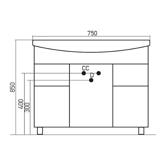 - Тумба Нептун 75 арт. 529560: распашной фасад - 3 шт., ящики, хромированная фурнитура.