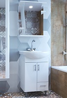 Комплектация: влагостойкое зеркальное полотно, шкафчик, полочки.