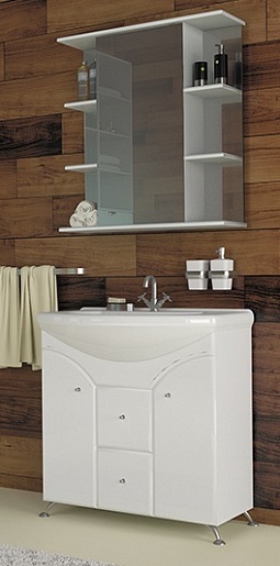 Комплектация: влагостойкое зеркальное полотно, шкафчик, полочки.