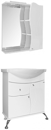 Комплектация: влагостойкое зеркальное полотно, шкафчик, полочки.
