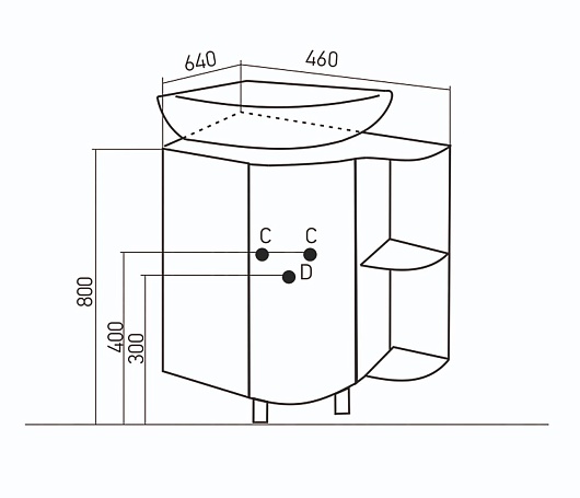 - Тумба Корнер левая: арт. 524720 , распашной фасад - 1 шт., полки, хромированная фурнитура.