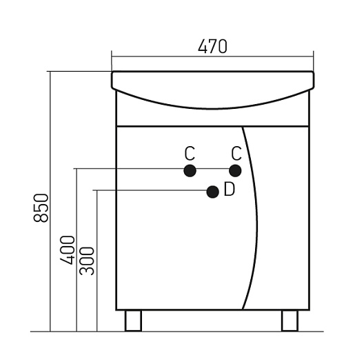 - Тумба Лаура 47: арт. 523136 , распашной фасад - 1 шт., хромированная фурнитура.