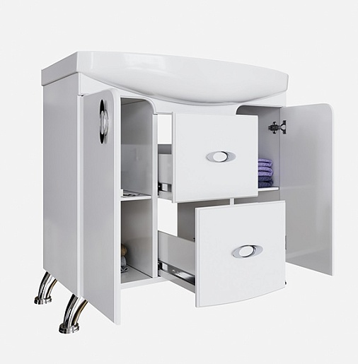 - Тумба Вивальди 85: арт. 542615, распашной фасад - 2 шт., выдвижной фасад - 2 шт., хромированная фурнитура.