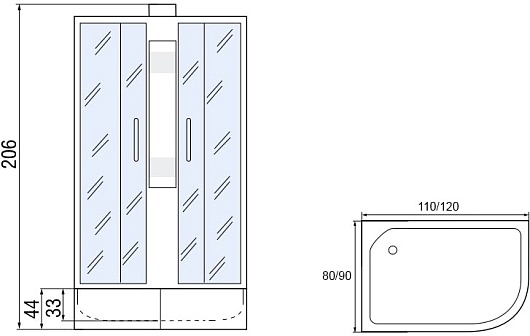Душевая кабина Мономах 110x80 Б/К 110/80/44 МЗ L.