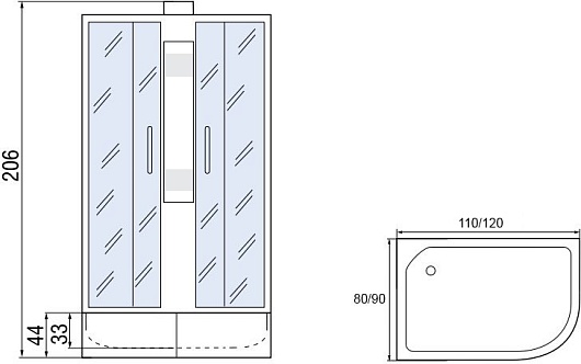 Мономах Душевая кабина 120x80 Б/К 120/80/44 МЗ R
