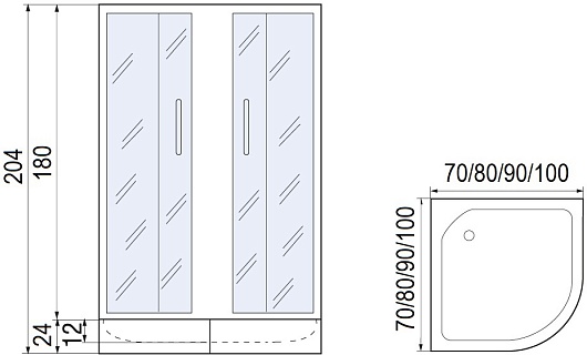 Душевой уголок Мономах ДУ 90/180 С МЗ BL без поддона - арт. 10000008620.