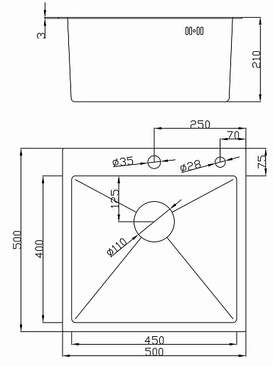 - Толщина мойки-3/1 мм.