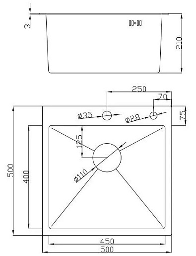 - Толщина мойки-3/1 мм.
