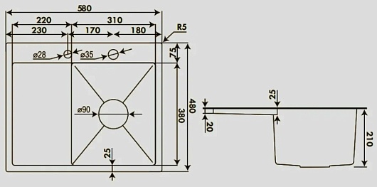Hoffger Мойка для кухни 5848R Black правая чаша