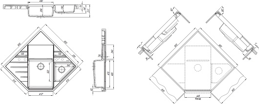 - Размер основной чаши (ШxГxВ): 430 х 495 х 200 мм.