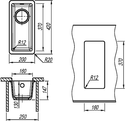 - Установочный проём (ШxГ): 160 x 370 мм.