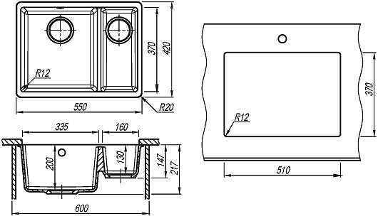 - Размер дополнительной чаши (ШxГxВ): 160 х 370 х 130 мм.