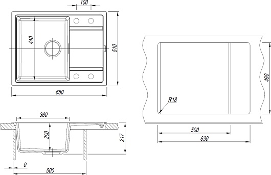 В комплекте: мойка, сифон со слив-переливом, крепеж.