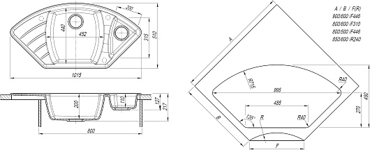 Мойка кухонная угловая Dr. Gans Габи везувий - арт. 25.050.E1015.410.