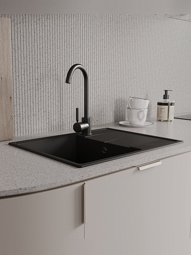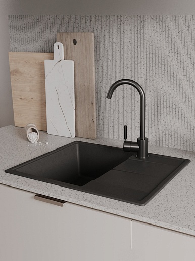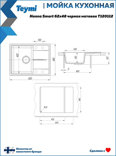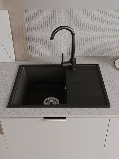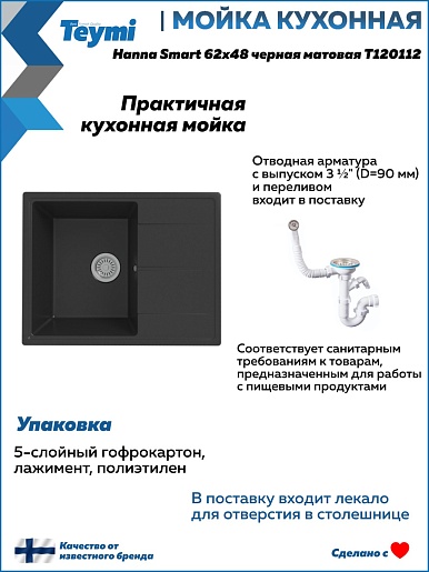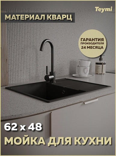 Мойка кухонная кварцевая Teymi Hanna Smart 62 черная - арт. T120112.